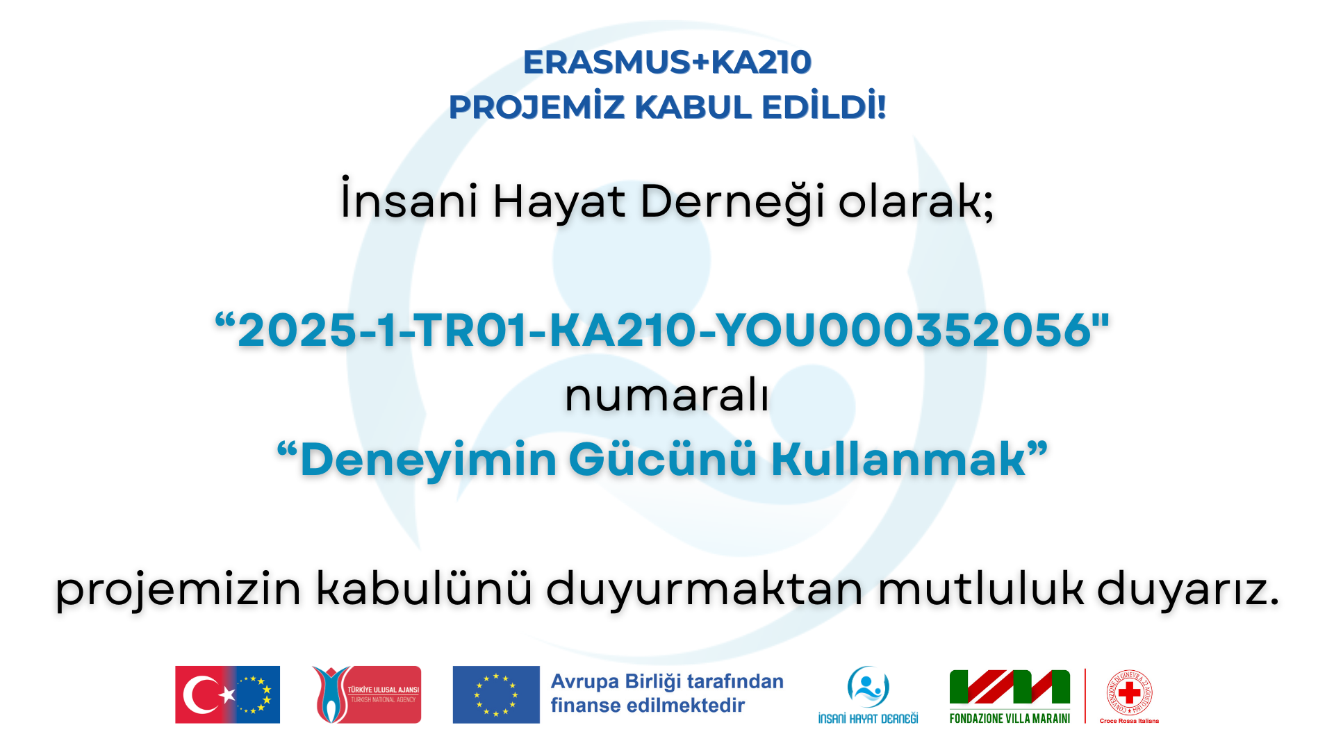 Erasmus+ KA210 programı kapsamında sunduğumuz “Deneyimin Gücünü Kullanmak” başlıklı projemiz, yapılan değerlendirmeler sonucunda başarılı bulunarak hibe desteği almaya hak kazanmıştır.